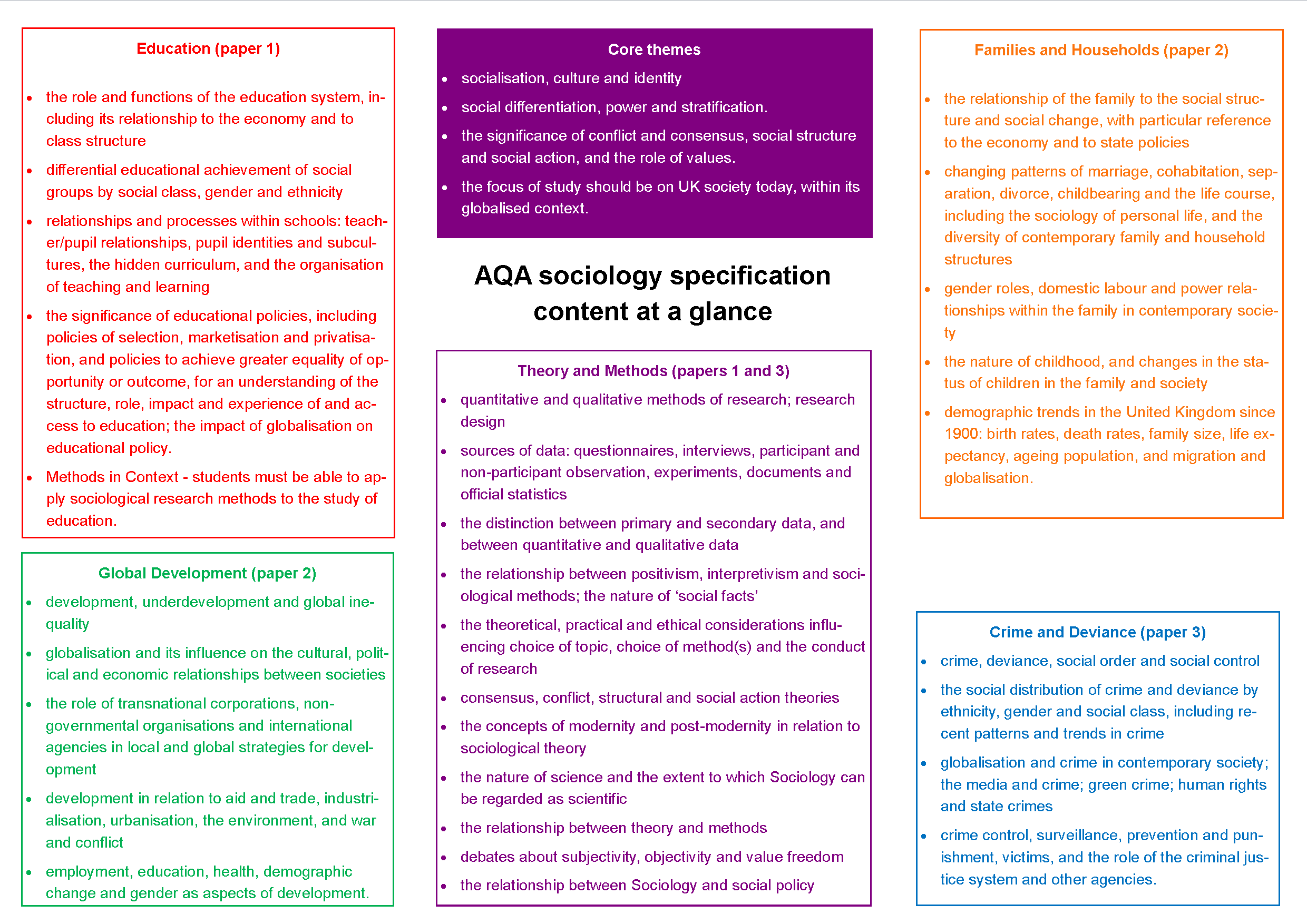 Aqa A Level Sociology Specification Content At A Glance Revisesociology