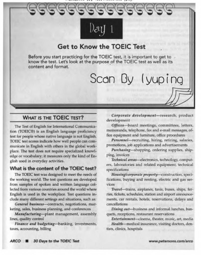 The TOEIC Listening and Reading test is a valid assessment of English-language reading and listening skills for the workplace. TOEIC TEST PAST PAPERS . TOEIC e-Newsletter Issue 1 Chinese version.