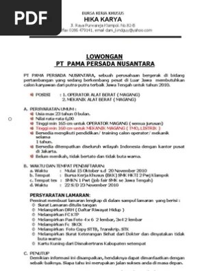 Kepala bagian personalia pt.pama persada . Info pt pamapersada nusantara terbaru 2021 yang terbaru bersumber dari karyawan dan mantan karyawan pt pamapersada nusantara bersifat anonim. Pt.pama kpcs song kisah nyata karyawan pama (vyan istimata). Daftar nama karyawan pt pama persada / berikut list daftar nama alamat dan nomor telepon perusahaan (pt) di wilayah jabodetabek:. United tractors (ut) rental division is the embryo of the founding of pama.